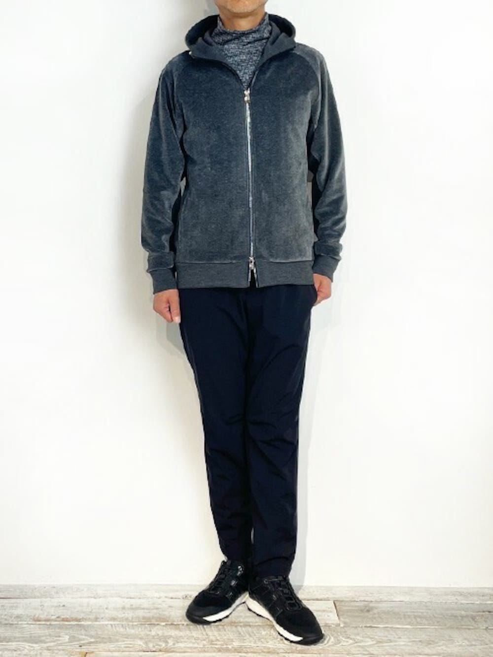 Knit Hoodie Style 滑らかな肌触りと上質な光沢が特徴のベロアフーディをタートルカットソーと合わせました。 パンツは、イタリア「OLMETEX」社のナイロン素材を使用したトラックパンツで、大人なSports Styleを目指しました。 【MONSIEUR NICOLE Instagram】 @monsieur.nicole