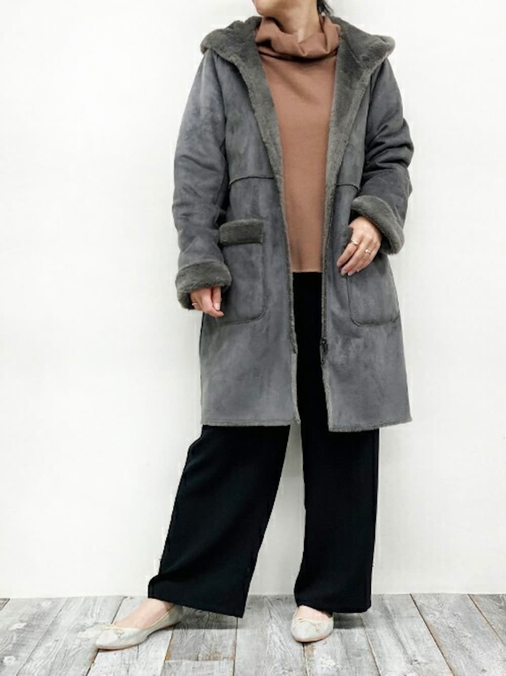 ニコルのムートンコート「リバーシブル フェイクムートンコート」を使ったコーディネート