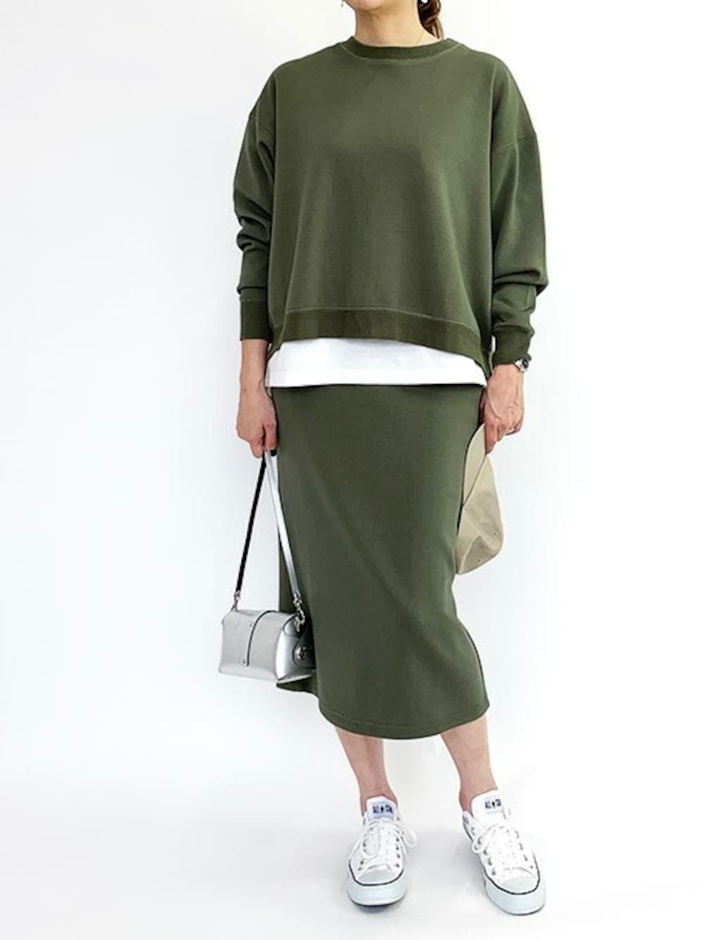 ニコルのアンサンブル「ライトスポンジセットアップ(トレーナー+スカート)」を使ったコーディネート