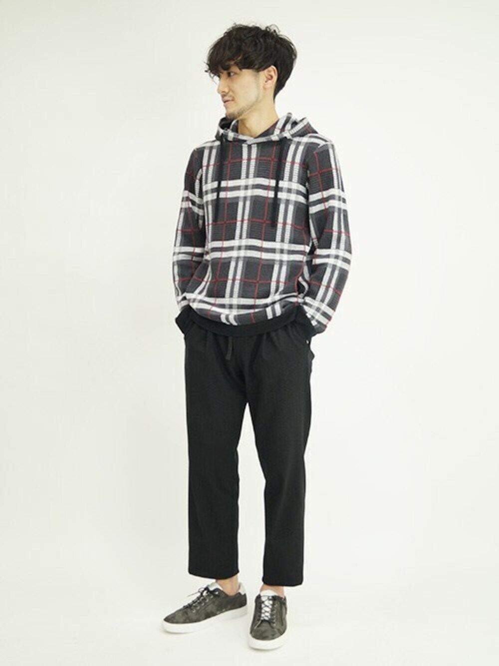 ニコルのパーカー「グレンチェックプルオーパーパーカ」を使ったコーディネート
