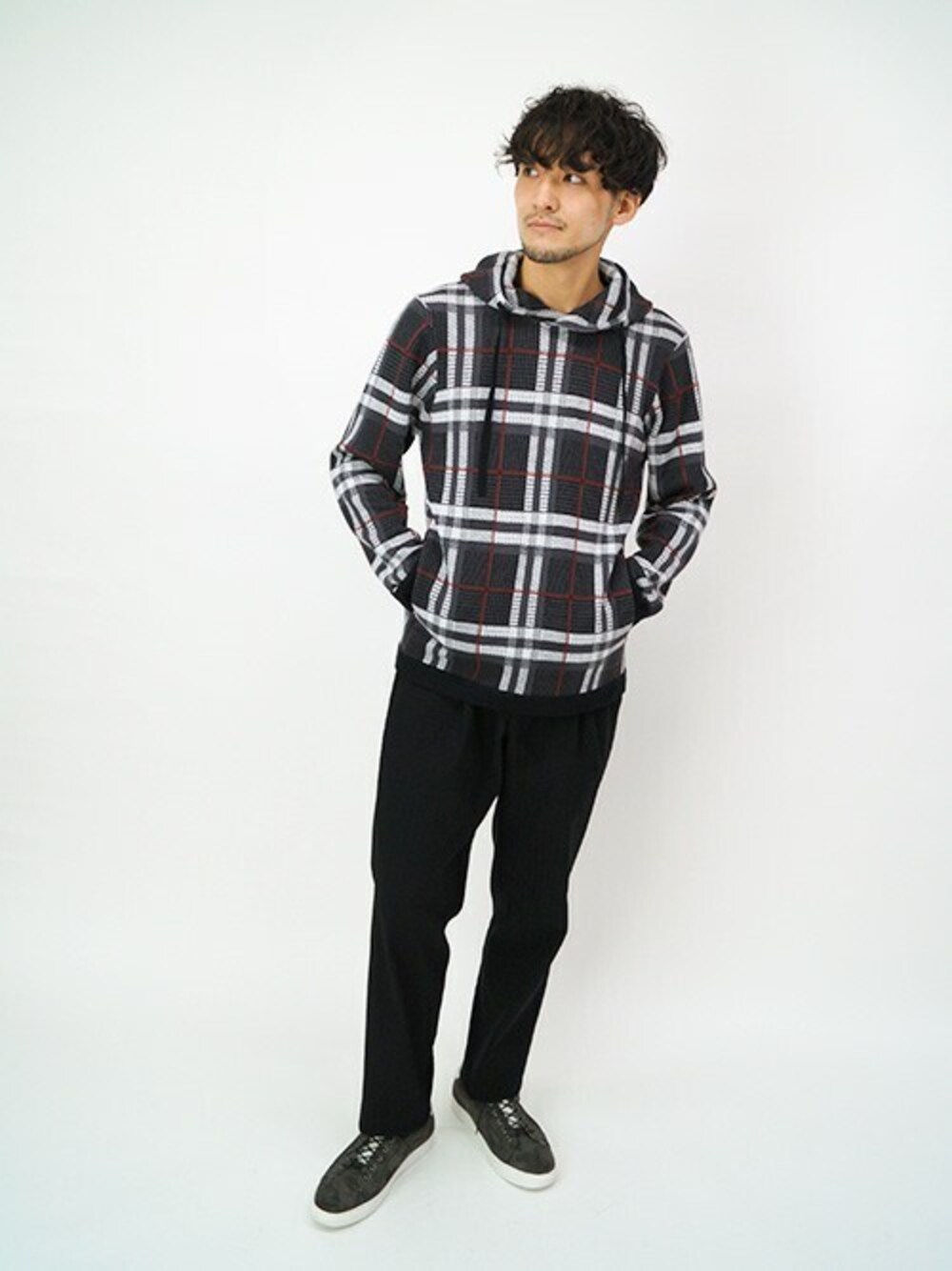 ニコルのパーカー「グレンチェックプルオーパーパーカ」を使ったコーディネート