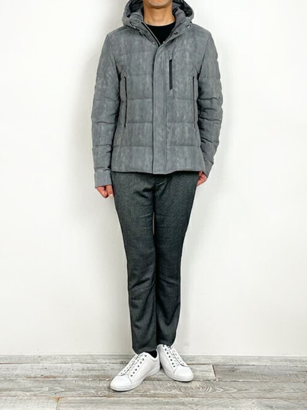 Sports Down Style メランジプリントを施したトリコット素材を使用したスポーツダイプダウンを着用しました。 止水ファスナーや、収納型フードスピンドルなど、スポーツテイストを強めたデザインが特徴です。 パンツは、SOFTTHERMO機能素材を使用したテーパードパンツを合わせました。 【MONSIEUR NICOLE Instagram】 @monsieur.nicole
