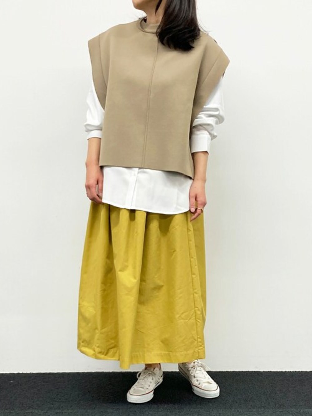ニコルのベスト「ニットベスト×バンドカラーブラウスSET」を使ったコーディネート