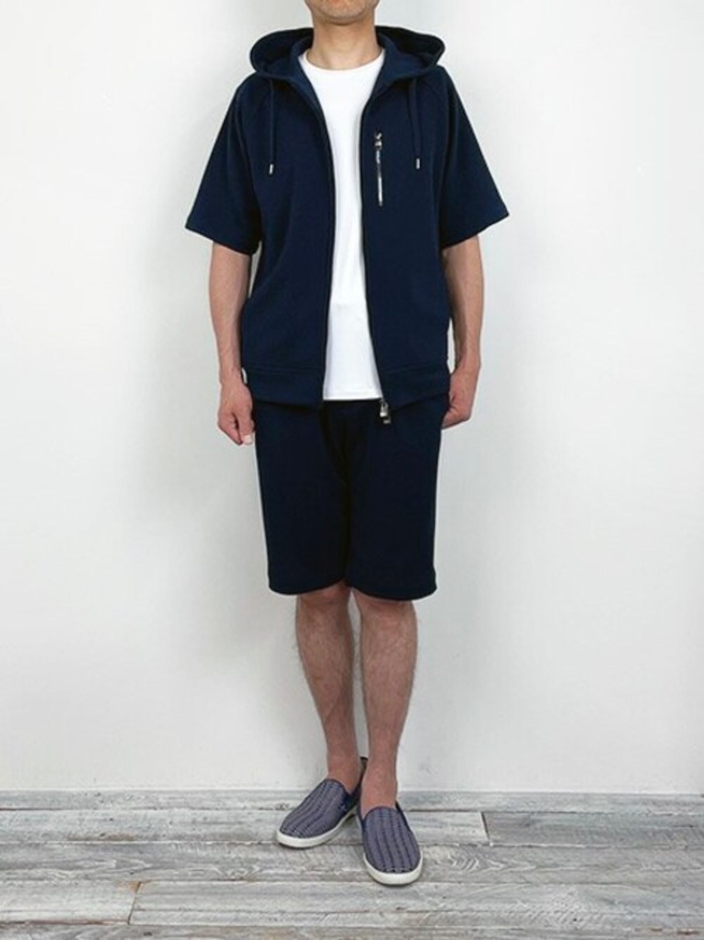 カジュアルフーディスタイル ブークレージャージを使用した半袖パーカー&ショートパンツのセットアップコーデとしました。 清涼感あるラフなスタイリングを目指しました。 【MONSIEUR NICOLE Instagram】 @monsieur.nicole