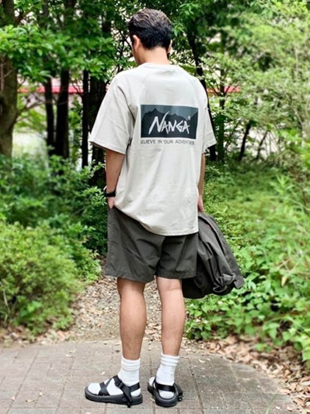 ニコルのTシャツ/カットソー「NANGA別注ロゴバックプリントTシャツ」を使ったコーディネート
