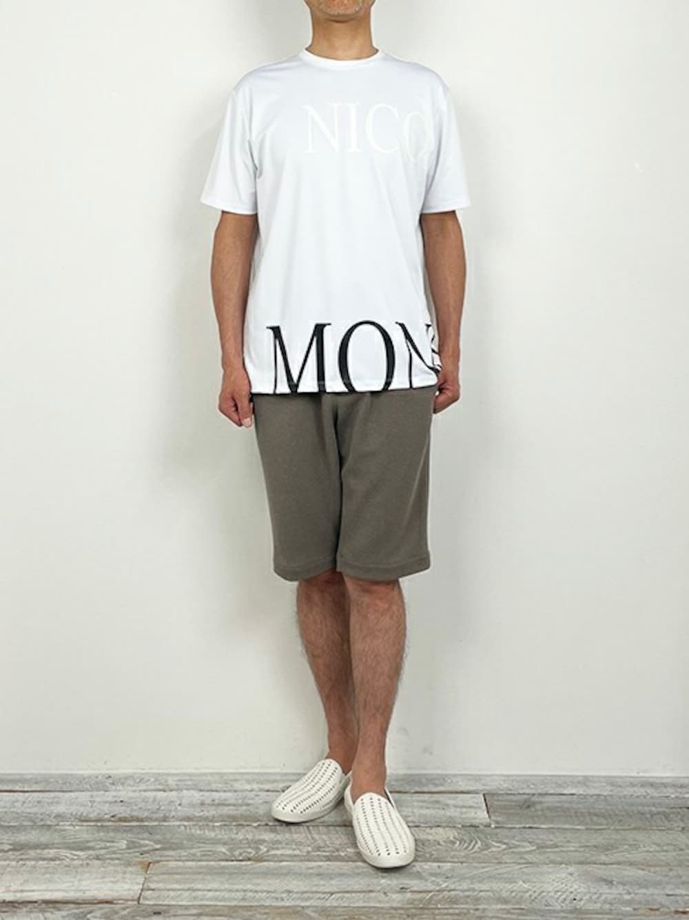 Summer T-Shirt Style 抗菌防臭・速乾機能のあるドライタッチな天竺を使用したロゴTを着用しました。 パンツは、ブークレージャージのハーフパンツを合わせました。 【MONSIEUR NICOLE Instagram】 @monsieur.nicole