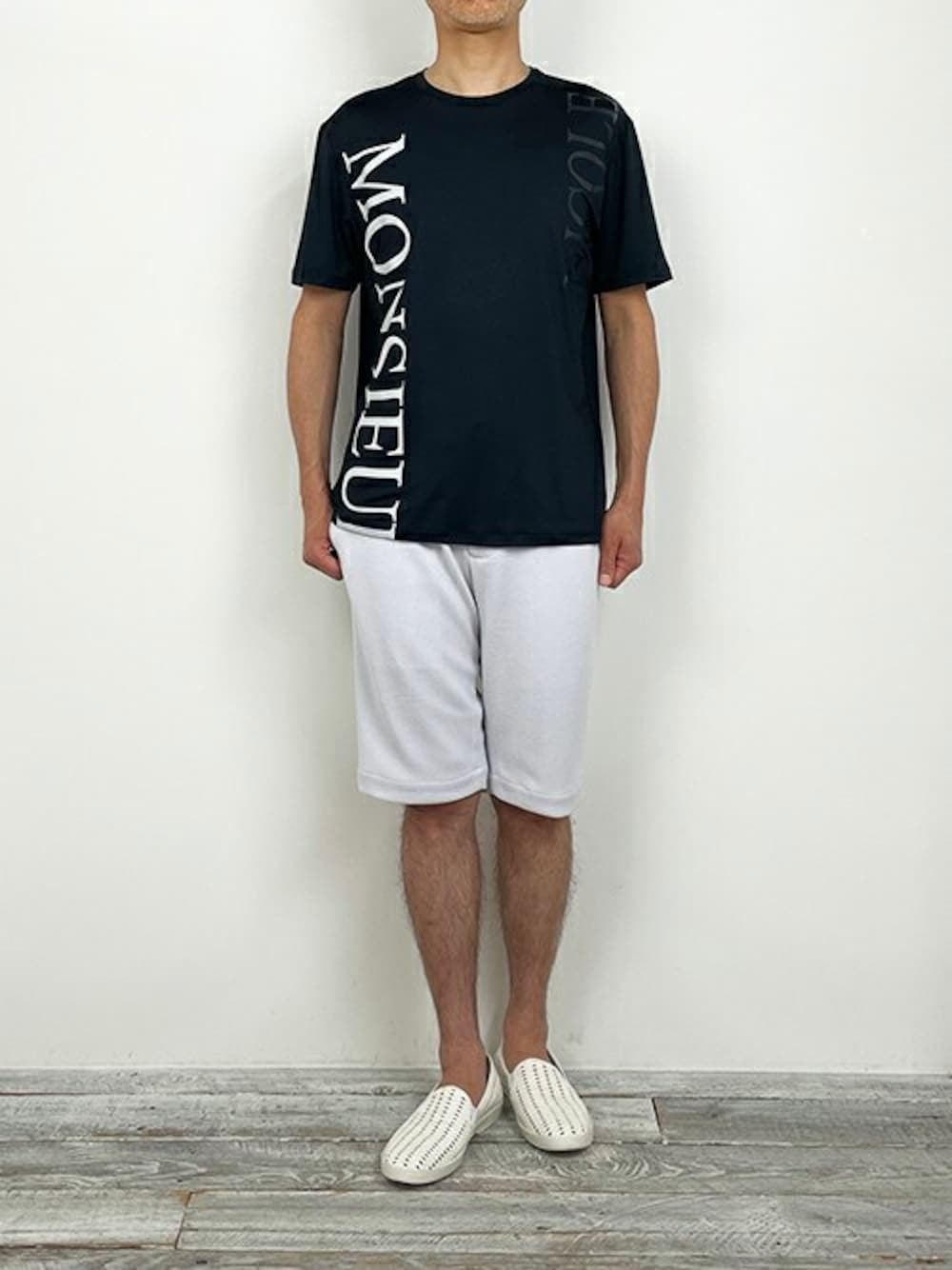 Summer T-Shirt Style 抗菌防臭・速乾機能のあるドライタッチな天竺を使用したロゴTを着用しました。 パンツは、ブークレージャージのハーフパンツを合わせました。 【MONSIEUR NICOLE Instagram】 @monsieur.nicole