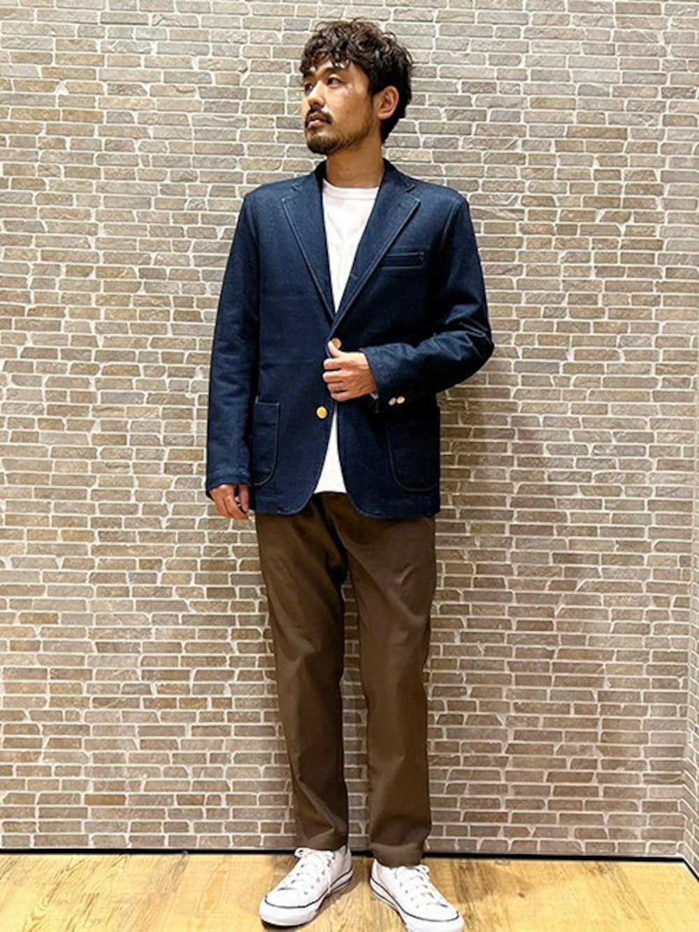 ニコルのテーラードジャケット「ストレッチデニムテーラードジャケット」を使ったコーディネート