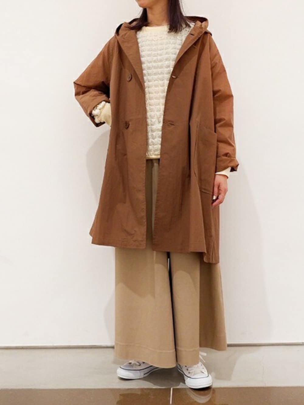ニコルのブルゾン「ナイロンロング丈フードコート」を使ったコーディネート