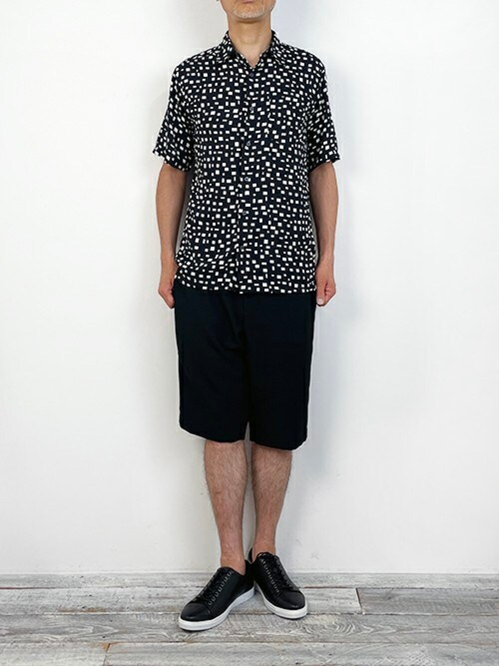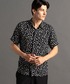 Backsatin amunzen Shirt バックサテン調アムンゼンに幾何学系プリントしたシャツを羽織りました。 ドライタッチな素材で肌離れが良く、夏のマストアイテムです。