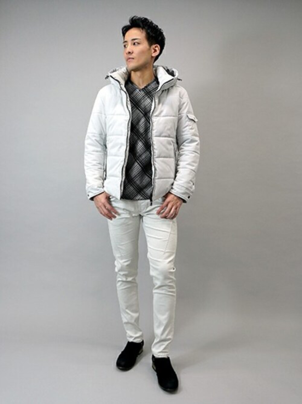 ニコル(ニコル本社)のブルゾン「フードプリント中綿ブルゾン」を使ったコーディネート