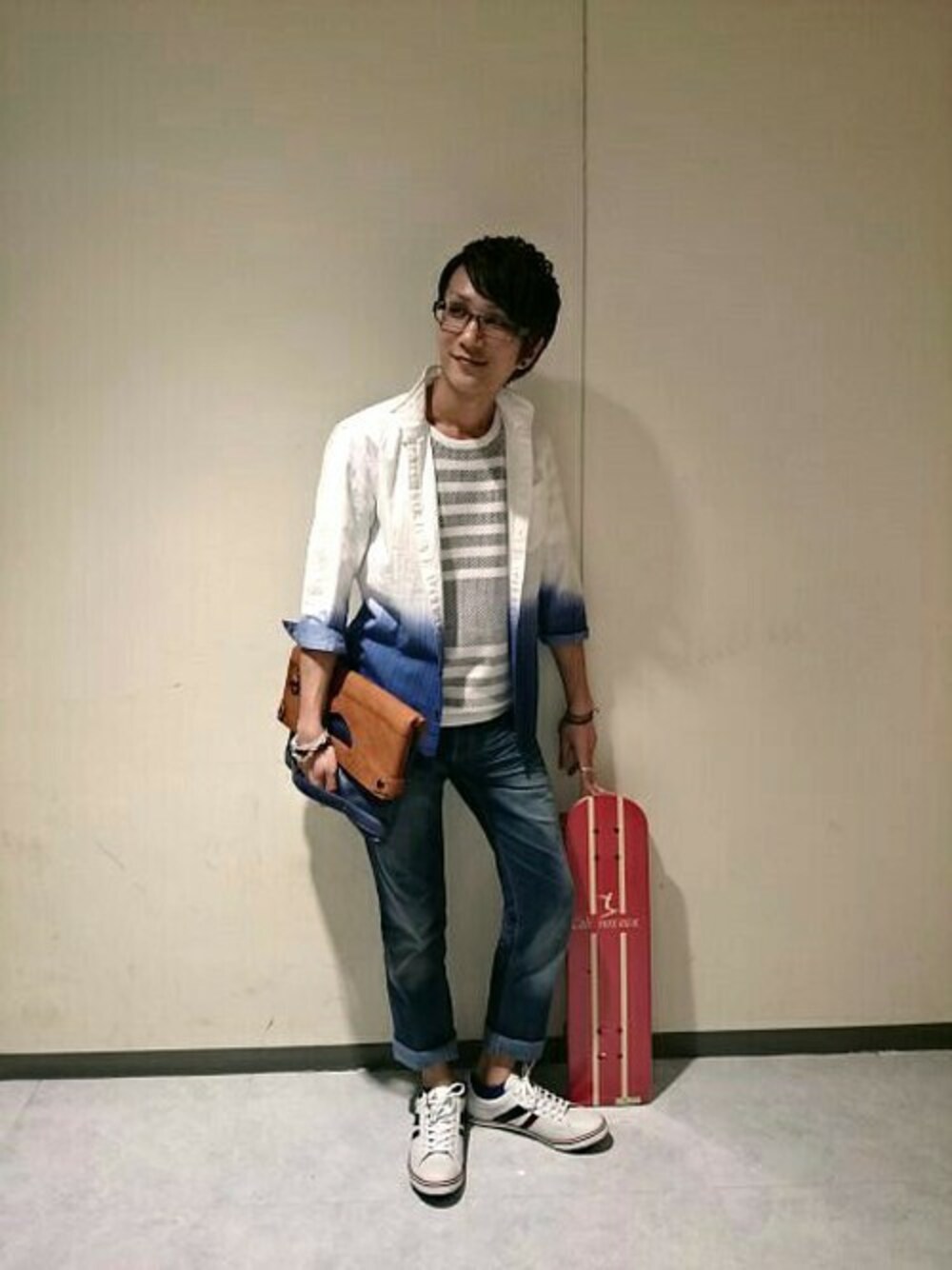 海岸デートにバッチリ合うコーディネートです! グラデーションシャツにサマーニットの合わせは好印象で、女性ウケも意識した爽やかスタイリングです!! NICOLE CLUB FOR MEN横浜ビブレ