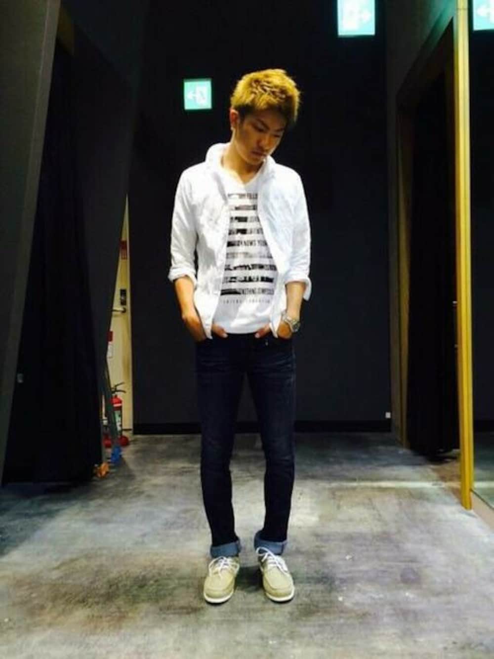 白シャツコーデ 綿麻素材のしわ加工のシャツにプリントTシャツ! 爽やかなデニムスタイル! HIDEAWAYSイオンモール橿原