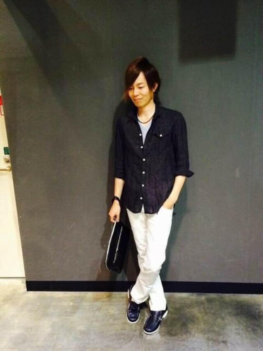 細身の白パンにフレンチリネン100%の麻シャツ。 爽やかなお出かけスタイル! HIDEAWAYSイオンモール橿原