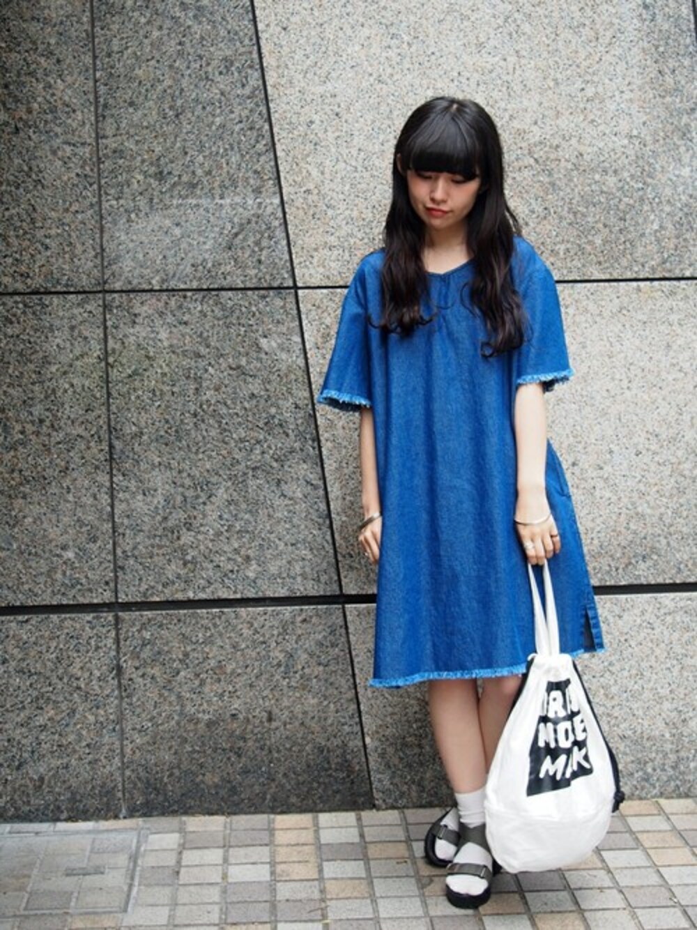 シンプルにデニムワンピースをスポサンと合わせました! 涼しくて、らくちんな機能的なスタイリングです♪ 179/WG