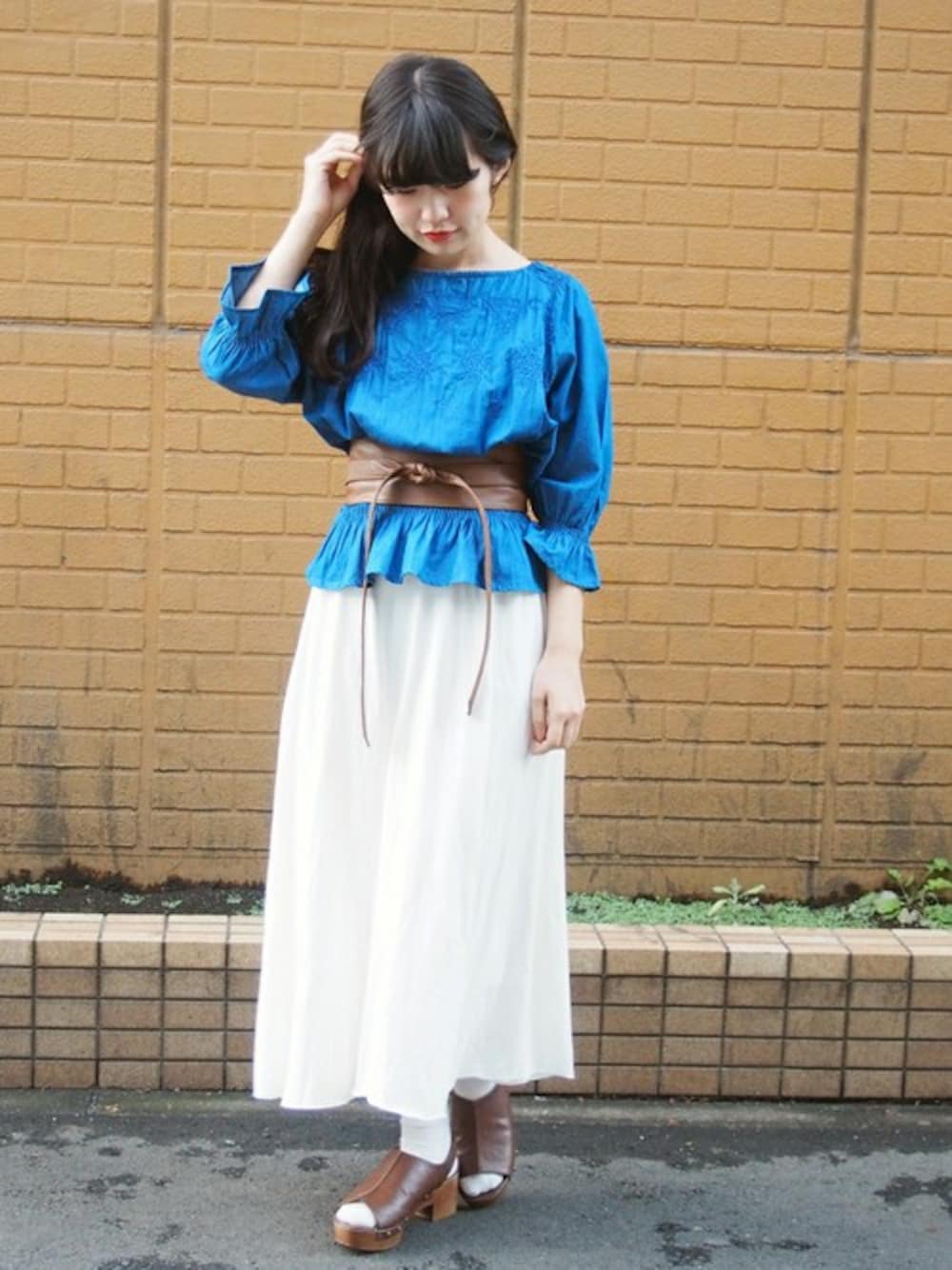 ニコルのシャツ/ブラウス「オフショルダーデニム刺繍ブラウス」を使ったコーディネート