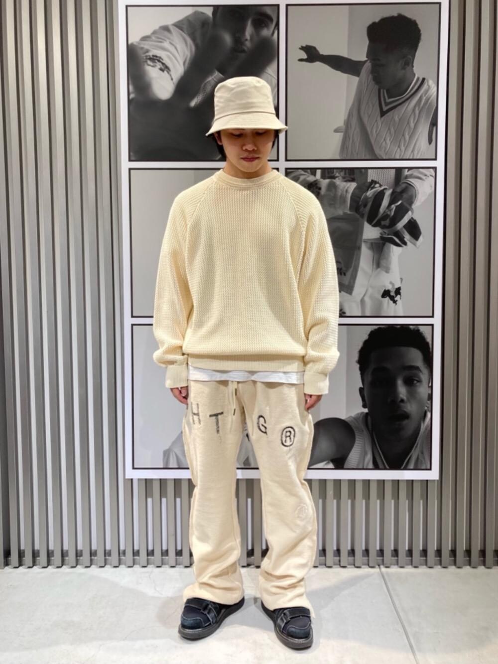 ●身長:170cm ●普段サイズ:トップス M-L、ボトムス S-M 【サイズ感】 ニット:やや大きめ スウェットパンツ:レングス長め 【着心地】 ニット:柔らかめの肌触り スウェットパンツ:パイル地の肌触り○ 【コーディネートポイント】 ワントーンで春らしい色味を意識しました。 ニットがクリーンな要素もあるため、パンツをゆったりとカジュアルなものにし、モンキータイムらしいギャップを作りました。