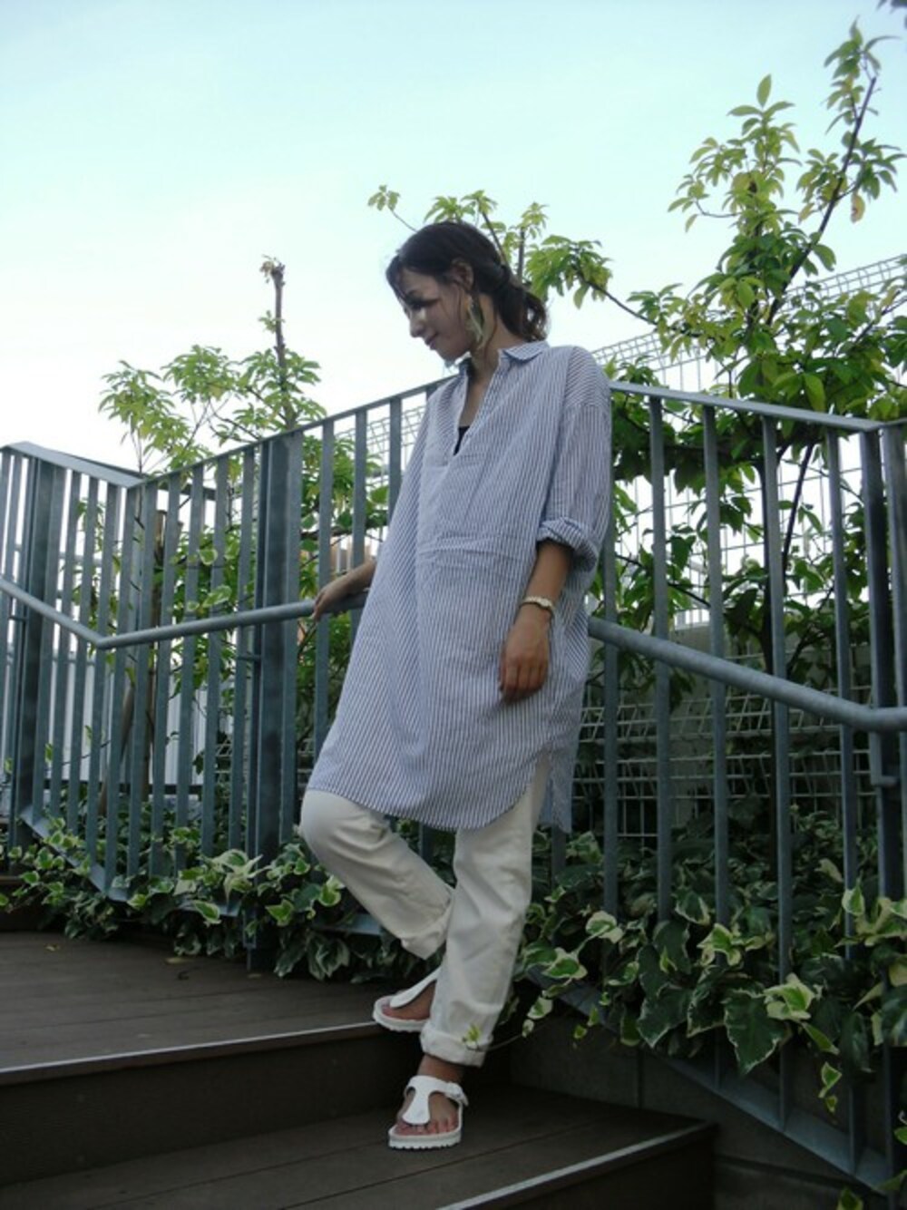 綿100%のワンピースは薄手素材のため、涼感があり夏にぴったりの1枚。 合わせるアイテムをホワイトにすることでより涼しげで爽やかな印象にしました。