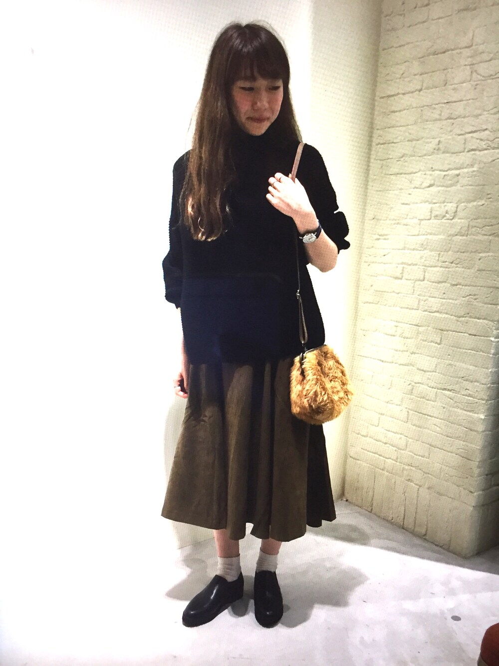 こちらのハイネックのニットは袖にゆったりボリュームがあり、シルエットがとても可愛くオススメです! サイドゴアスリッポンを合わせてキレイめにしました。 パンツスタイルにも、とっても合います♪