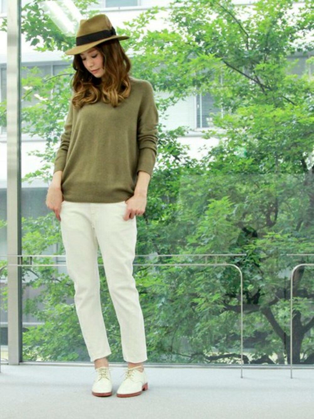 ふわふわしたやわらかくあたたかいムース素材のニットをメインに。 つば広のハットで今年らしく仕上げました。 シンプルだけど雰囲気のあるコーディネートです。