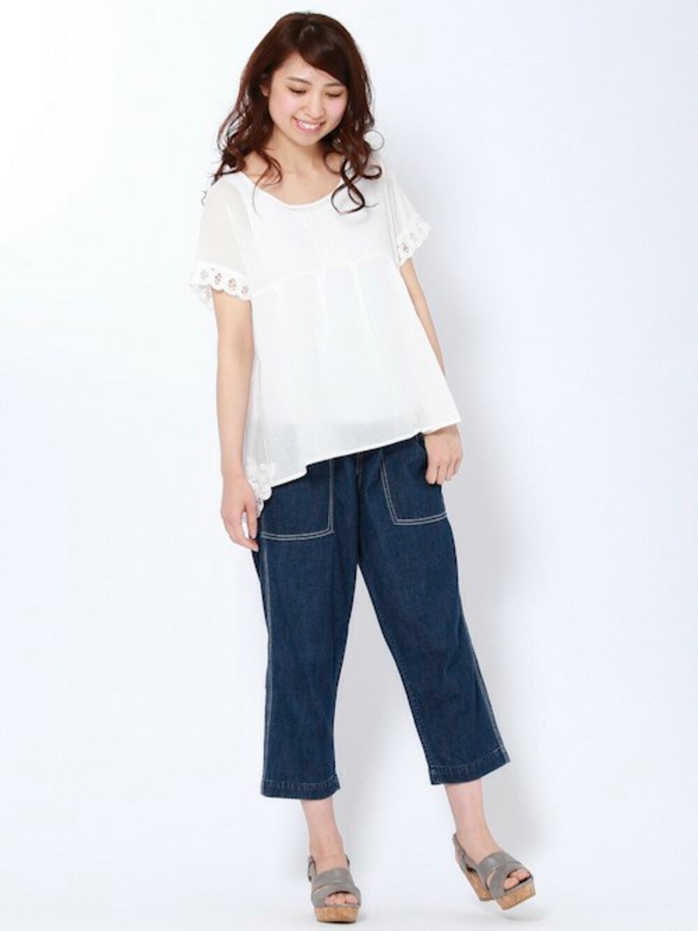 nikoand...本社(niko and... 本部)のシャツ/ブラウス「【niko and...】綿ローンモチーフバテンブラウス」を使ったコーディネート