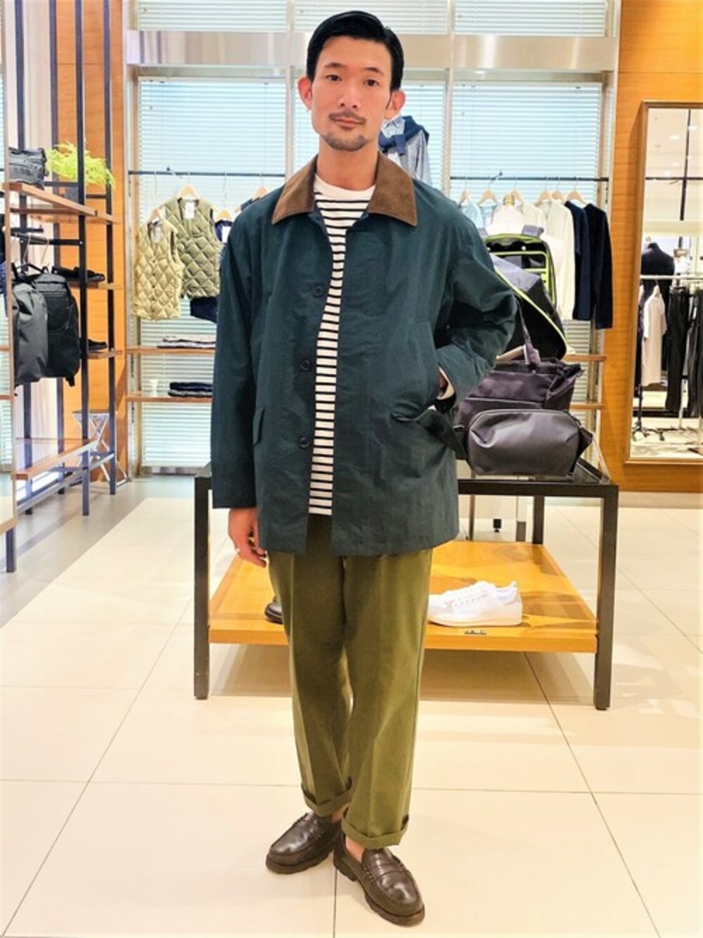 クラシカルなハンティングジャケットをテーマにしたGRAND FATHER JACKETは、軽量であり、且つ高い強度を備えるナイロン素材を使用して、ブランドらしさを体現した今シーズン注目のアイテム。ナイロンとはいえ、光沢の少ないグログラン素材はコーディネートの妨げにはならず、襟はコーデュロイ素材を使うことで、愛嬌のある雰囲気になっている。