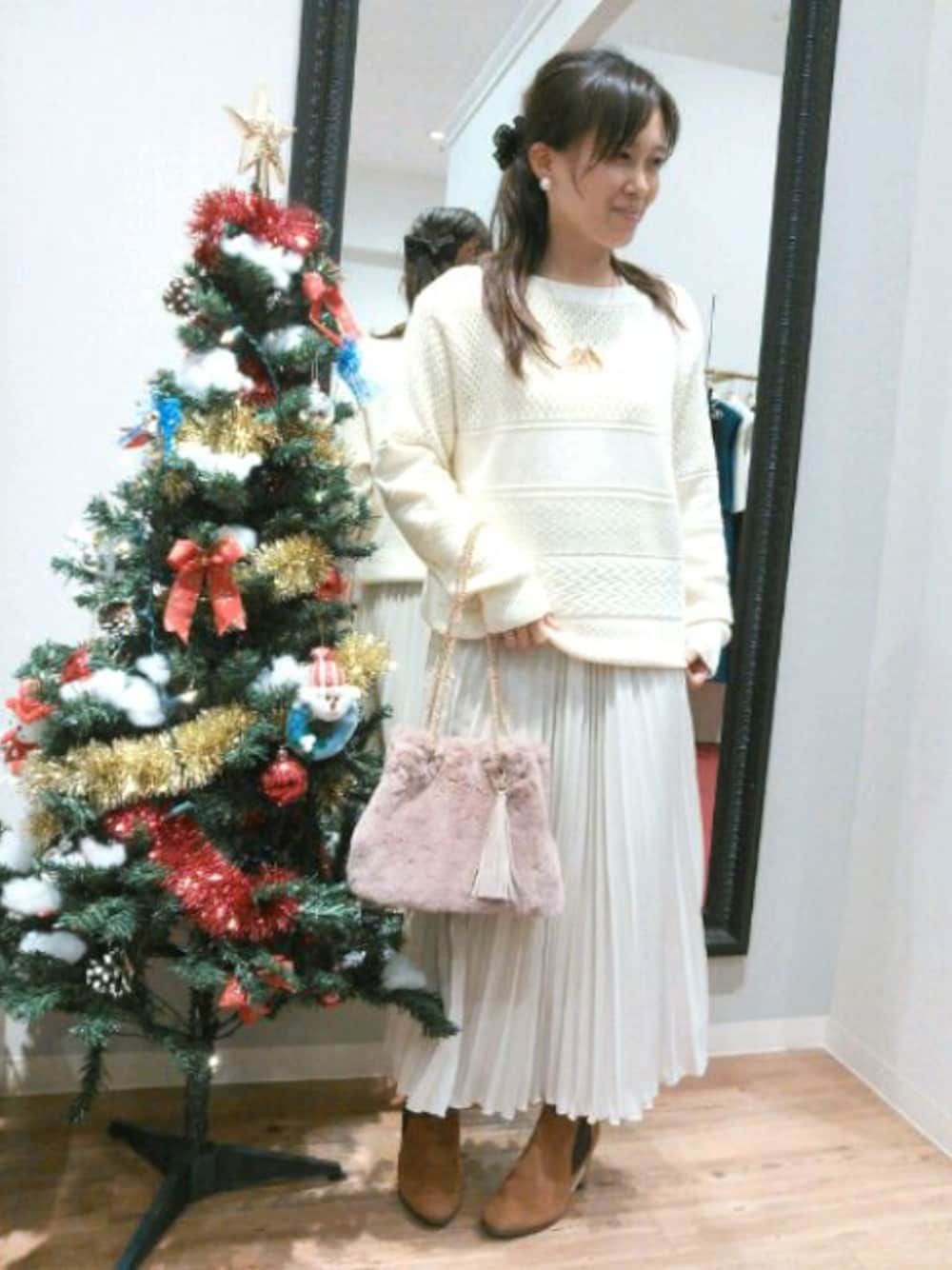 こんばんわ(^ー^) 日に日に寒くなってきましたね!! 寒くて毎朝布団と格闘してます(笑) 今日はクリスマスツリーの前で・・・ ワントーンコーデで可愛いファーバックをアクセントに.。.:* ♡ ゆったり編みニットでゆるっとふんわりコーデにしてみました!! 編み目が可愛いオススメニットになります★*゚ クリスマスに向けて決め事多くてワクワクしてます♩✍♡✧➳ 色々考えてる時間って楽しいですよね!? 先日とっても美味しいスイーツを頂きまし た。 見た目が凄く可愛いい(*´˘`*)♡ 小窓にて。 いつもありがとうございます ♡✧➳、セーブ、フォローとっても嬉しいです(*^^) 次回もお楽しみに•*¨*•.¸¸♪