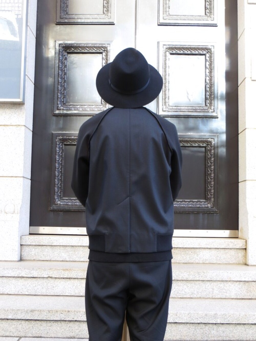 リベルムアルビトリウムのボンディングブルゾンにSISEのパンツ。静岡銀行本店前で撮影。 http://narrenschiff.eshizuoka.jp/ http://narrenschiff.jp/