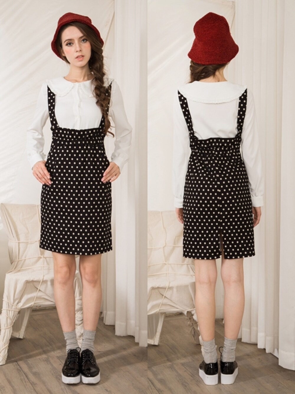 Natalieのワンピース「Polka Dot Dungaree Dress」を使ったコーディネート