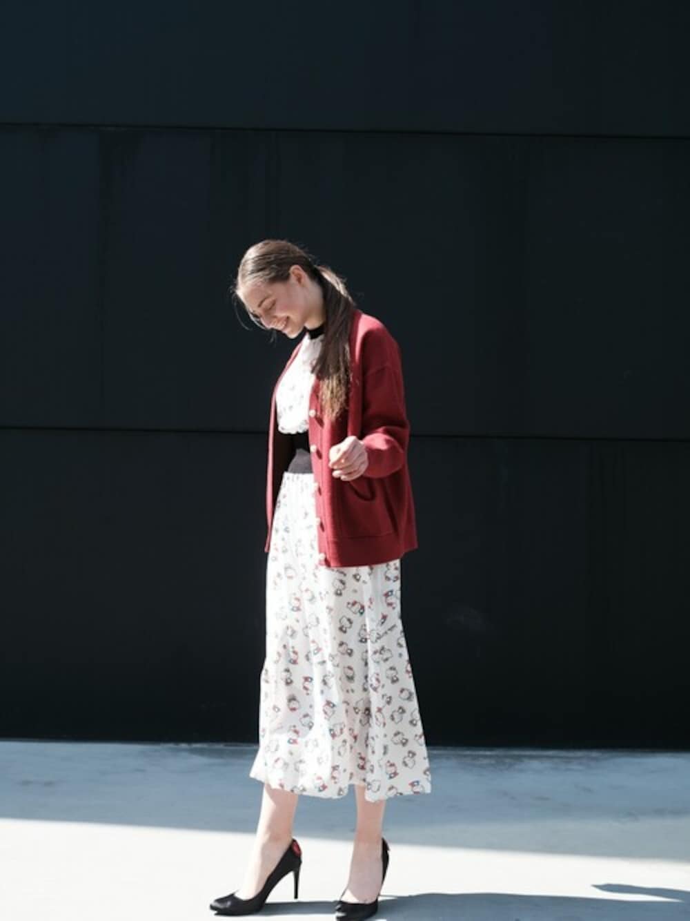 ✅Hello kitty カーディガン シンプルなカーディガンもゆとりを 持たせたニュアンスの出る一枚♡ ◆point ポイントは、大胆に入ったキティちゃんのプリント。 伸縮性とハリのある素材でシルエットが崩れないのも嬉しい。 ✅Hello kittyリブ切替ワンピース 1枚で主役級のデザインです♡ ◆point キティ柄が可愛らしいワンピース。 ウエストに切り替えがあるのでスタイルアップ効果も◎。 ✅ Hello kittyリボンハイヴァンプパンンプス ブーティの様に穿ける、深さのあるシルエットが特徴のハイヴァンプパンプス♡ ◆point サイドにポンッと載せた、ハローキティのリボンがポイント。遊び心が光る大人の技ありアイテムです。