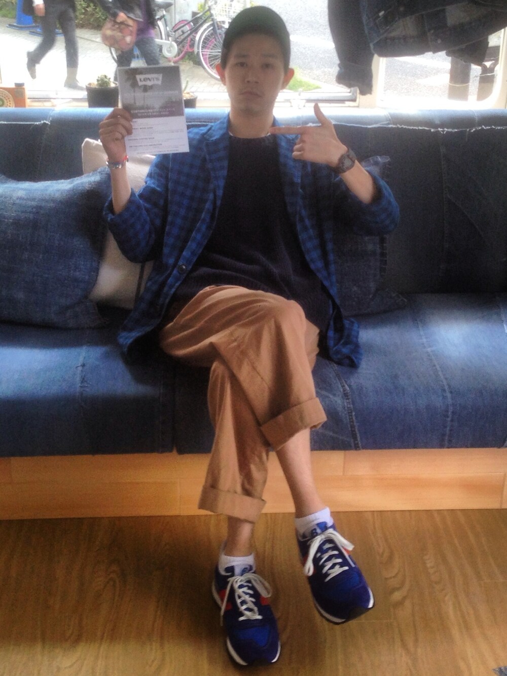 PARCO前でリーバイスのイベントやってます ジャケットは私物のウミットベナン。 パンツは私物のサイ。 バングルは私物のレイアダカイです。