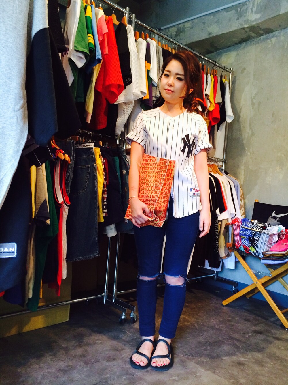 Shibuya"T" OLD POSTのジャージ「New York Yankees Baseball Shirt」を使ったコーディネート