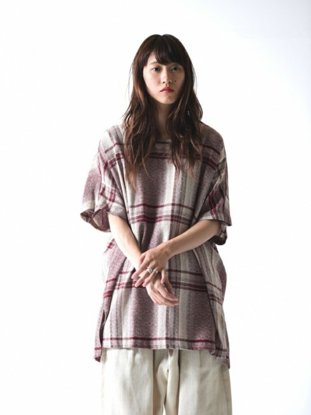 OVIE STUDIOのTシャツ/カットソー「YANTOR Amunzen Check Long Pullover wine」を使ったコーディネート