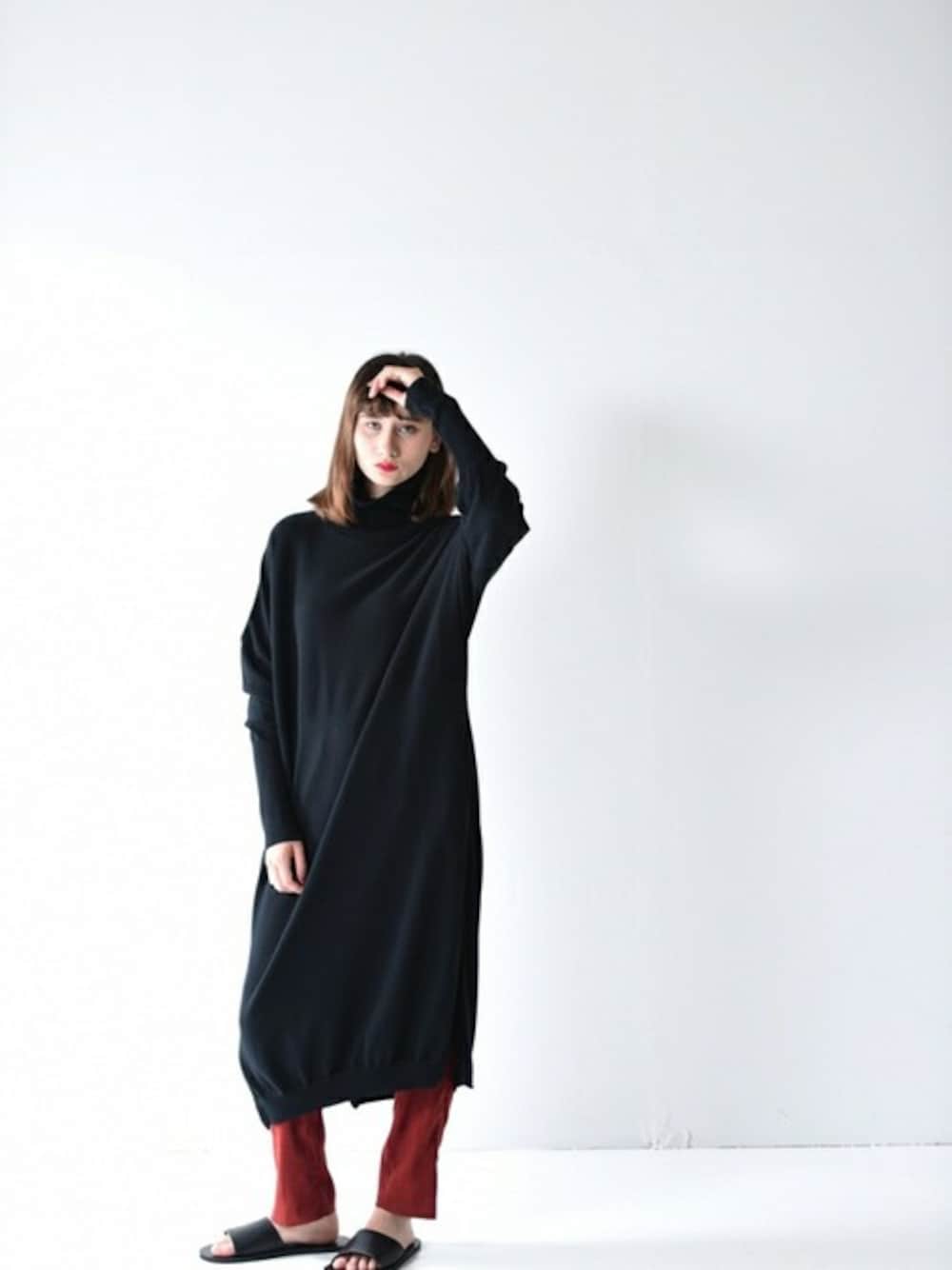 OVIE STUDIOのニット/セーター「YANTOR cotton turtle knit One-Piece black」を使ったコーディネート