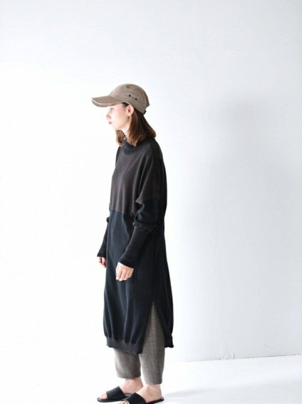 OVIE STUDIOのニット/セーター「YANTOR cotton turtle knit One-Piece black×brown」を使ったコーディネート