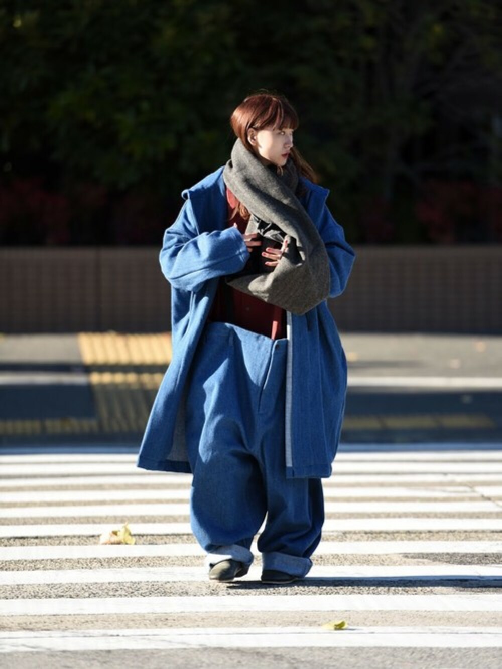 OVIE STUDIOのストール/ショール「My Beautiful Landlet オリジナルヘリンボーンビッグスヌード brown」を使ったコーディネート