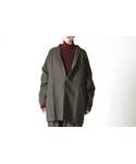 尾州で制作したオリジナルのコットンリネンウールを使用したFall Jacket。 首から身体に流れるように沿うYANTOR特有のカッティングで仕立てられています。 フォルムは要所にボリュームを出し、部分的にテーパードさせたり、裾に紐を入れ絞れたりすることで、ボリューム(身体と布の間の空間) にコントラストをつけています。 YANTORデザイナーでしかありえない発想、YANTORらしいシルエット、 ヤントルの拘りの1着と言えるジャケットです。 ファブリックは二重織りになっており、リネンウールにコットンを加えております。 そのため、重厚感のある厚みがありながら、柔らかさも併せ持った生地に仕上がっております。 また生地の表面はリネンの表情が出て、細かい凹凸と、風合いを感じるのが特徴。 襟裏には国産の牛革を使用し、重厚感のある仕上がりとなっております。 裏地には釜染めで染めムラを作った高密度のコットン100%のファブリックを使用し、肌触りも良い一着。 生地、縫製ともに日本。 ユニセックスで着用可能。