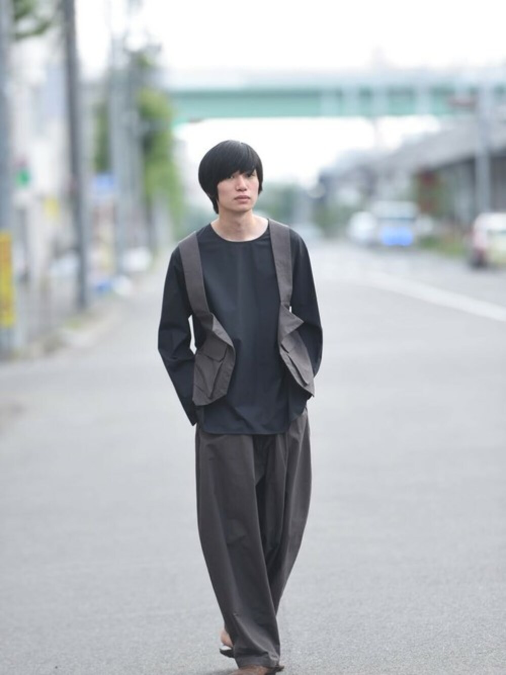 OVIE STUDIOのベスト「My Beautiful Landlet Bafu Cottonバックパックベスト OVIE STUDIO limited charcoal」を使ったコーディネート