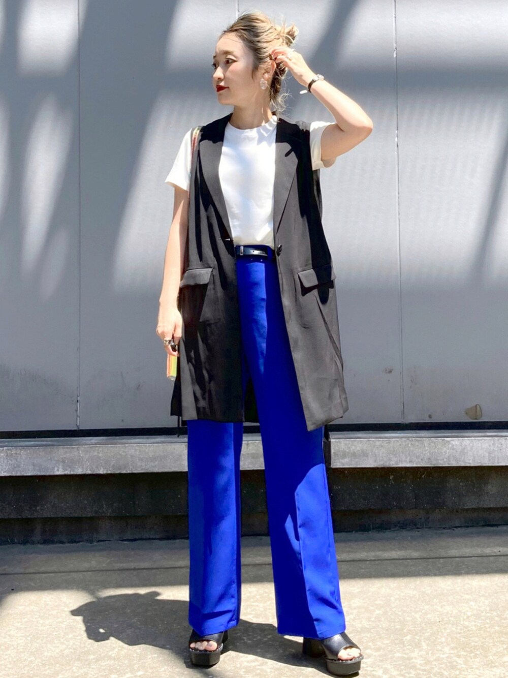 身長158センチ 普段サイズ ・トップスM ・ボトムスS ・シューズS 【サイズ感】 Tシャツ/腰骨隠れるくらいの丈感(着用サイズ/L) ジレ/太もも隠れるくらいの丈感(着用サイズ/フリー) パンツ/ウェスト、太もも、ゆとり有り(着用サイズ/S) 【ジレジャケット】 どんなスタイリングもオシャレに決まるジレは今年マストアイテムです! カラーパンツで合わせてトレンド感あふれるコーデにしました! 新宿ミロード店でお待ちしてます!