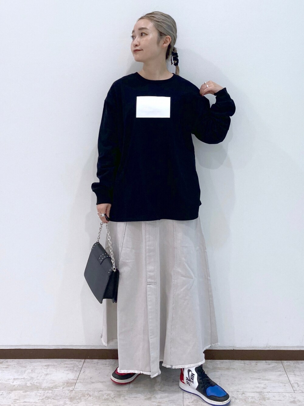 プレートロゴロンTの フロント部分のロゴと バックスタイルの小さいロゴが さりげなくぽいんとになります! お尻が隠れるシルエットですが サイドにスリットが入っているので ダボダボしすぎない感じで着られます!