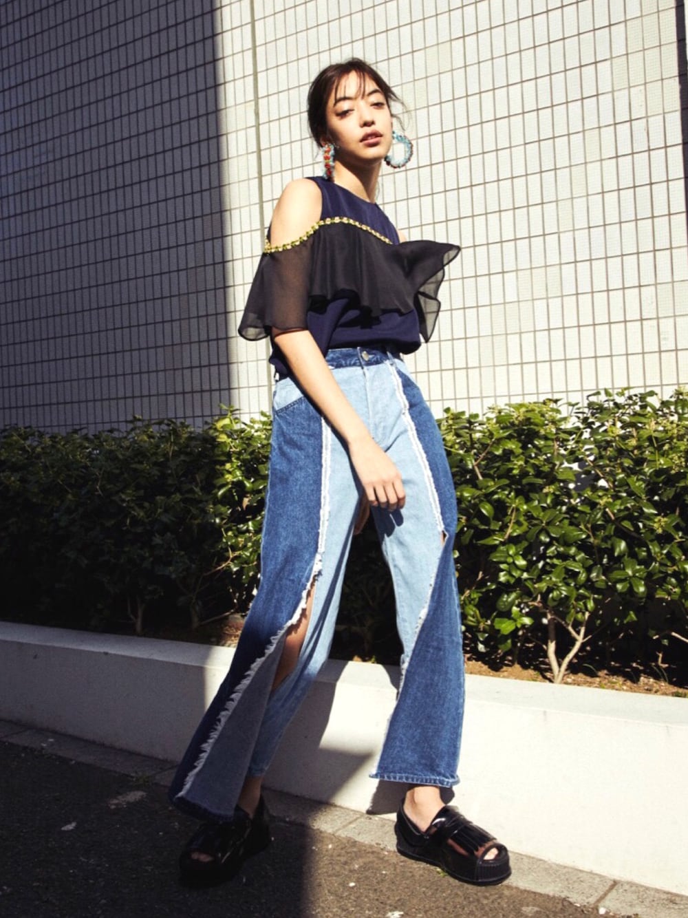 【HOT ITEM】 ✔️SKINNY&WIDE DENIM PANTS ✔️VEIL SLEEVE TOP ✔️FLOWERS WREATH PIERCE