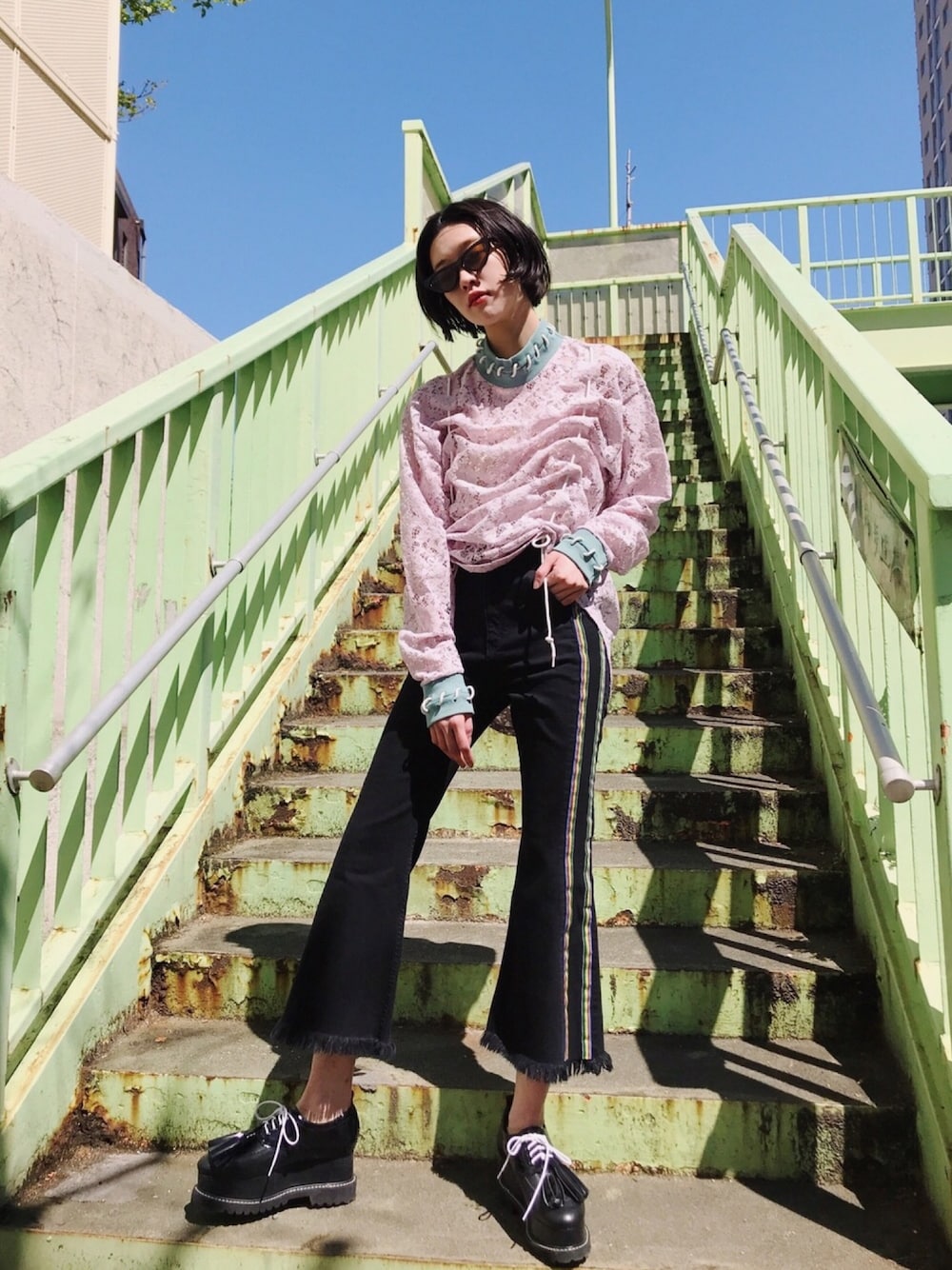 PAMEO POSEのTシャツ/カットソー「Staple Lace Top」を使ったコーディネート