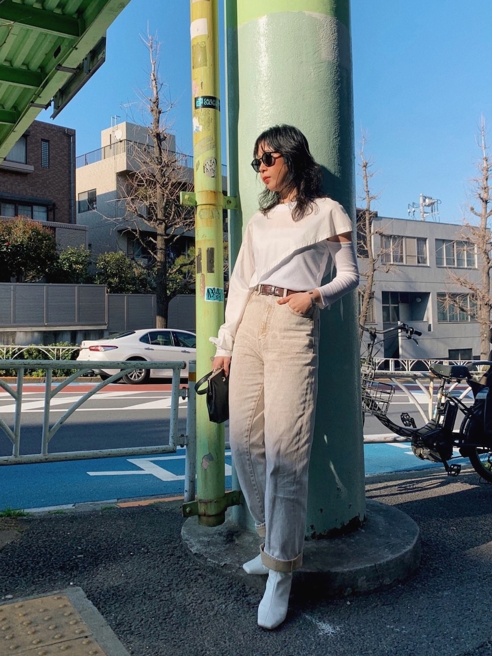PAMEO POSEのTシャツ/カットソー「2way Halfway Top」を使ったコーディネート