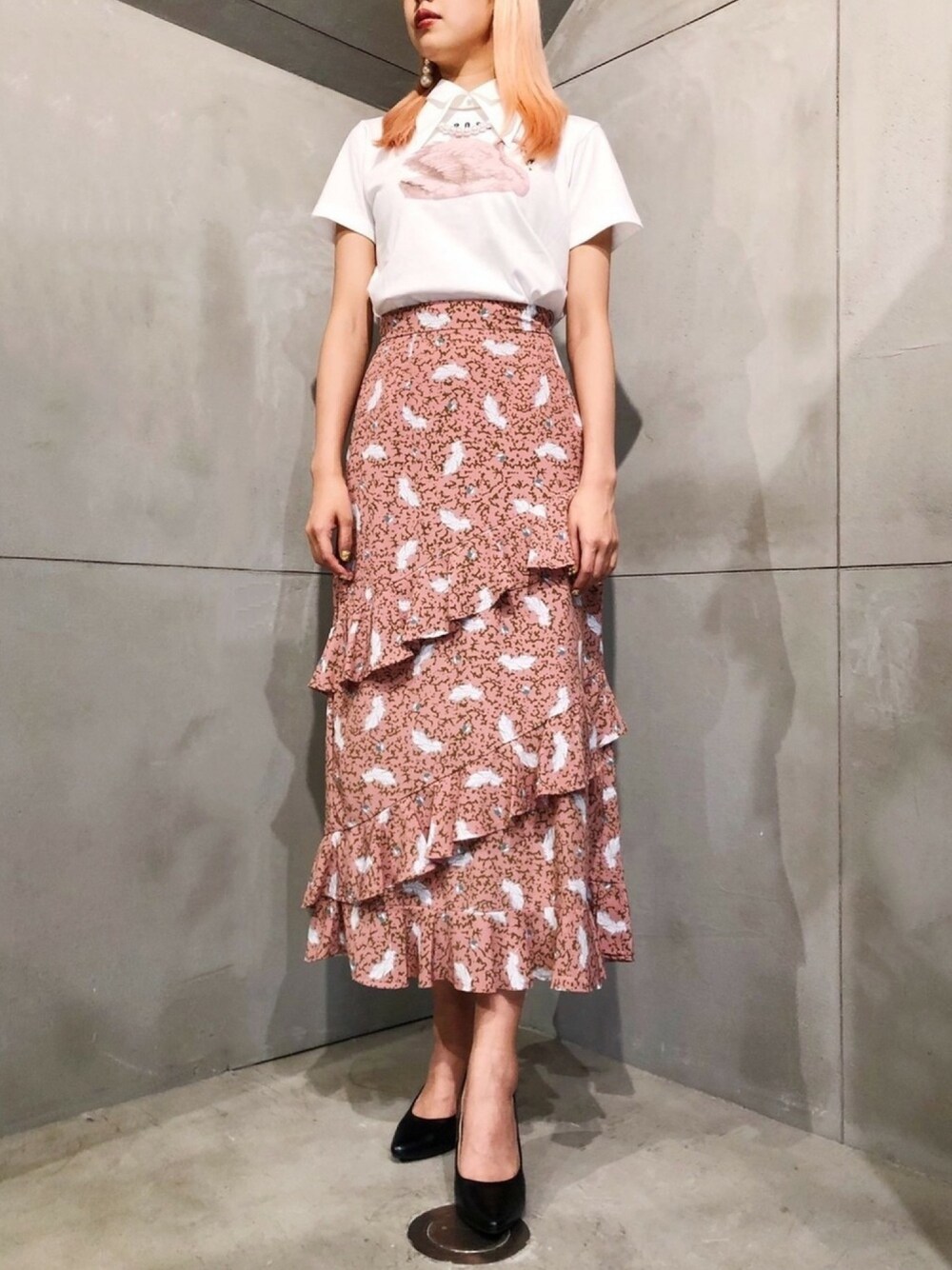 【2020AW COORDINATE 06】 ●Drop Pearl Pierce ●Lonely Swan Chibi-T ●Swan Lake Spiral Skirt