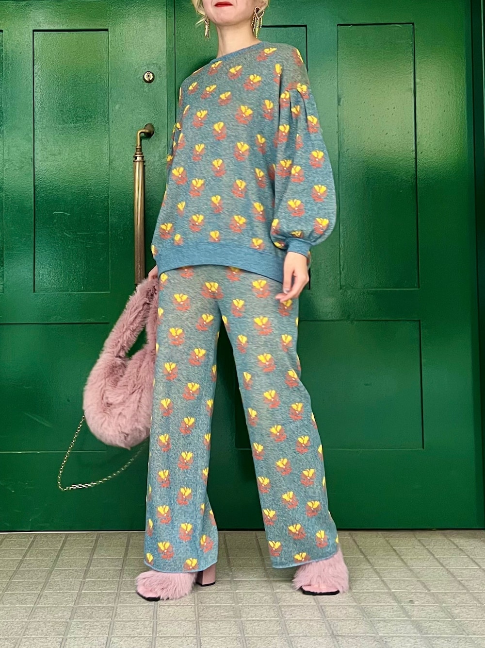 【2022AW COORDINATE】 ✔️Violet Flower Sweater ✔️Violet Flower Knit Pants ✔️Meta Heart Fur Bag ✔️Meta Mules