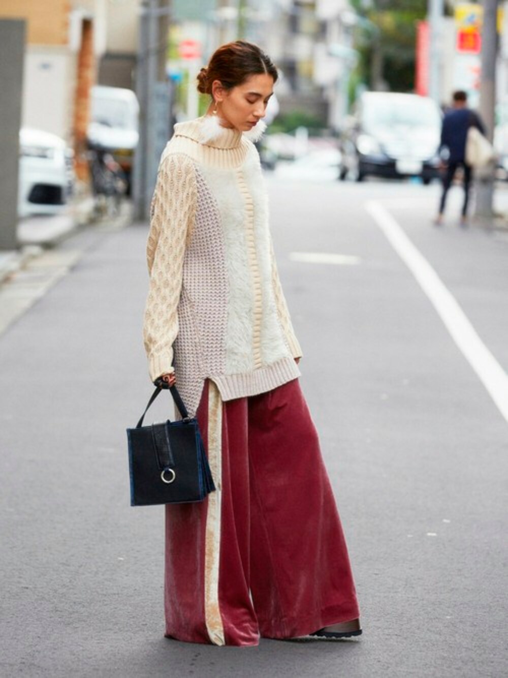 PAMEO POSEのニット/セーター「HIGH NECK MIX COLOR KNIT TOP」を使ったコーディネート