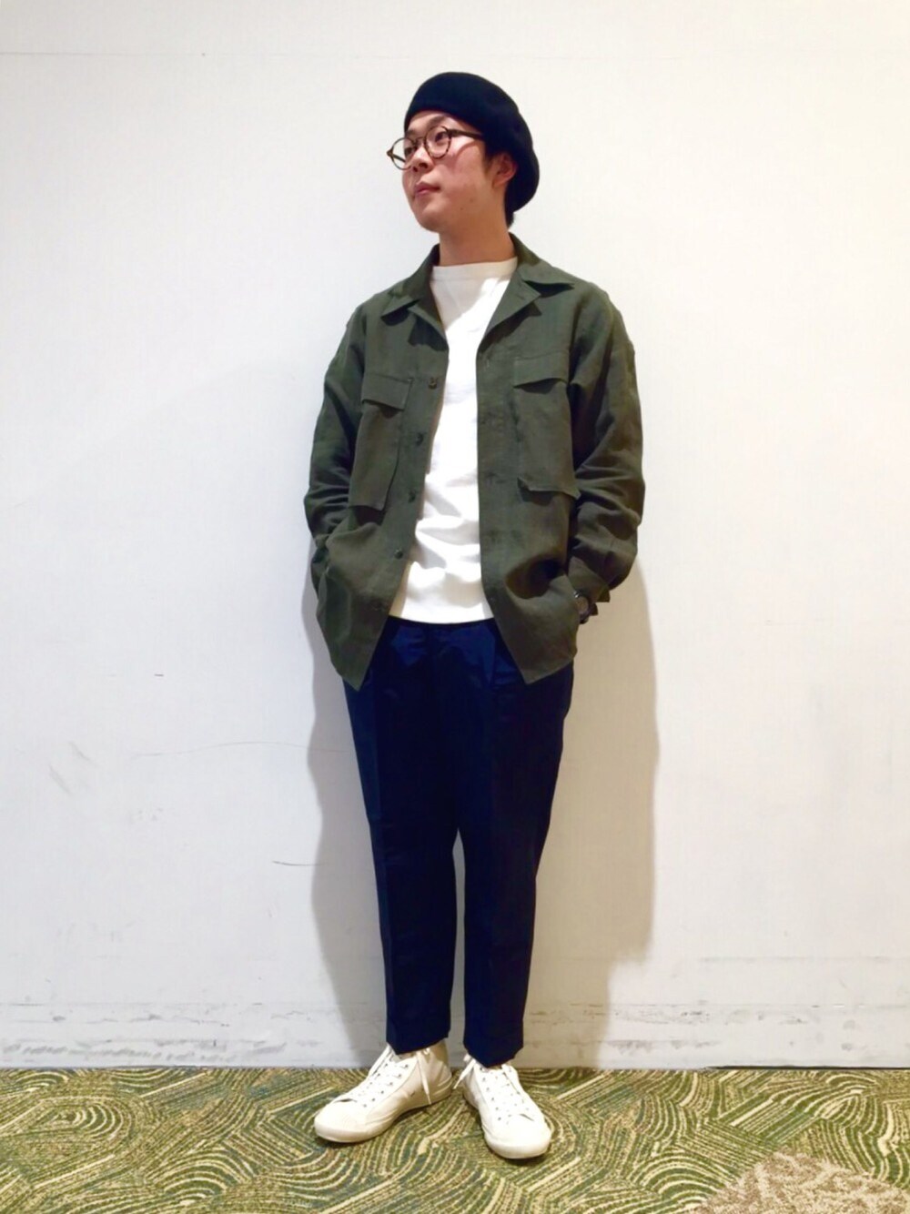 今回はほぼ全身HAVERSACKです! 柔らかいリネンのシャツにシャリ感のあるパンツでメリハリをつけました🌗 インナーのスウェットとスニーカーのホワイトで抜け感も👌 寒くなったり暖かくなったりなので体調にはお気をつけて💭 ちなみに僕は喉をやられております…