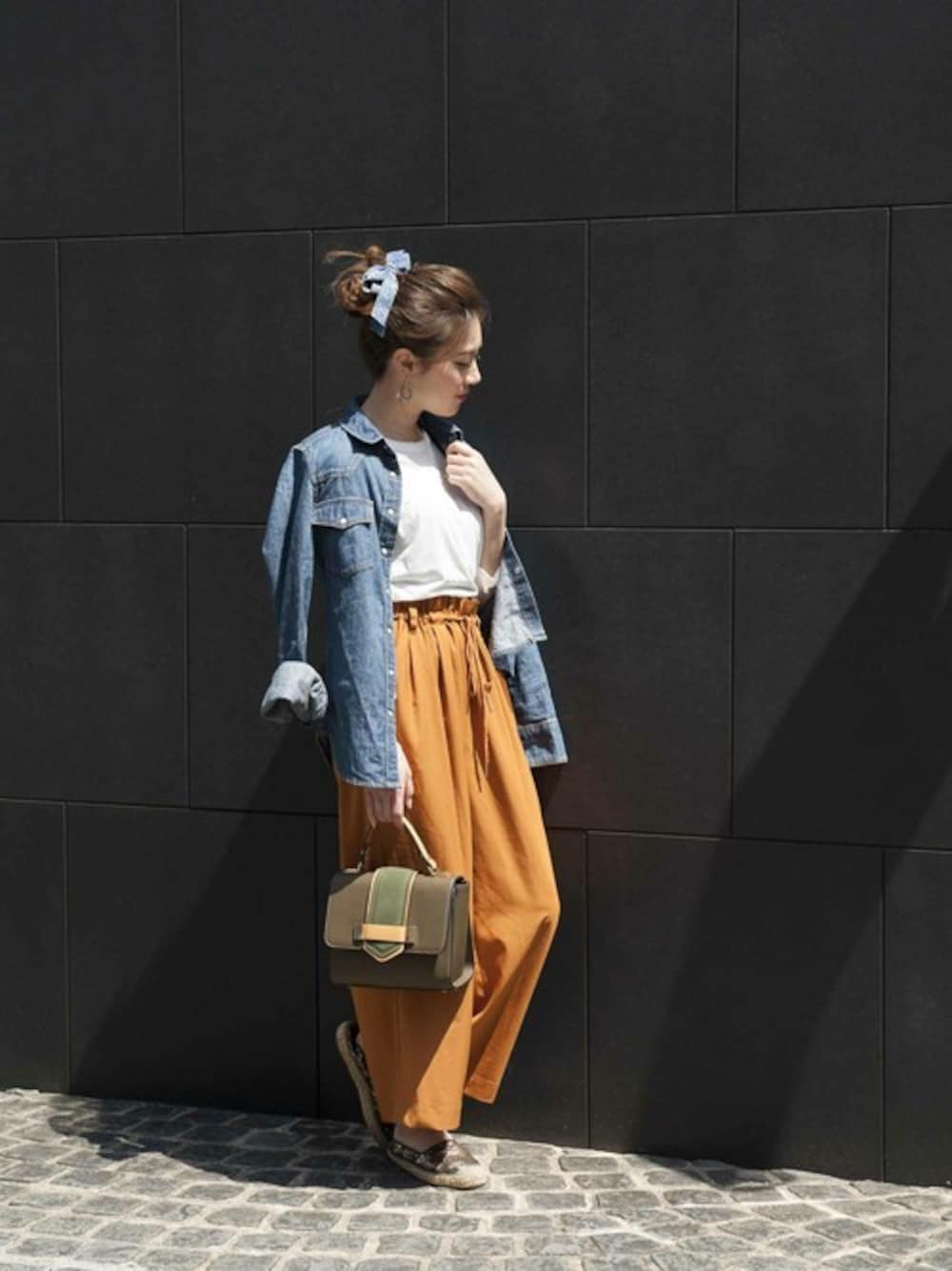 トレンドのデニムジャケットでおでかけ♪ イエローのボトムで程よい鮮やかさをプラス! 公式Instagramでは#プレクロで ステキなコーディネートを募集中♪ instagram⇨@plain_clothing