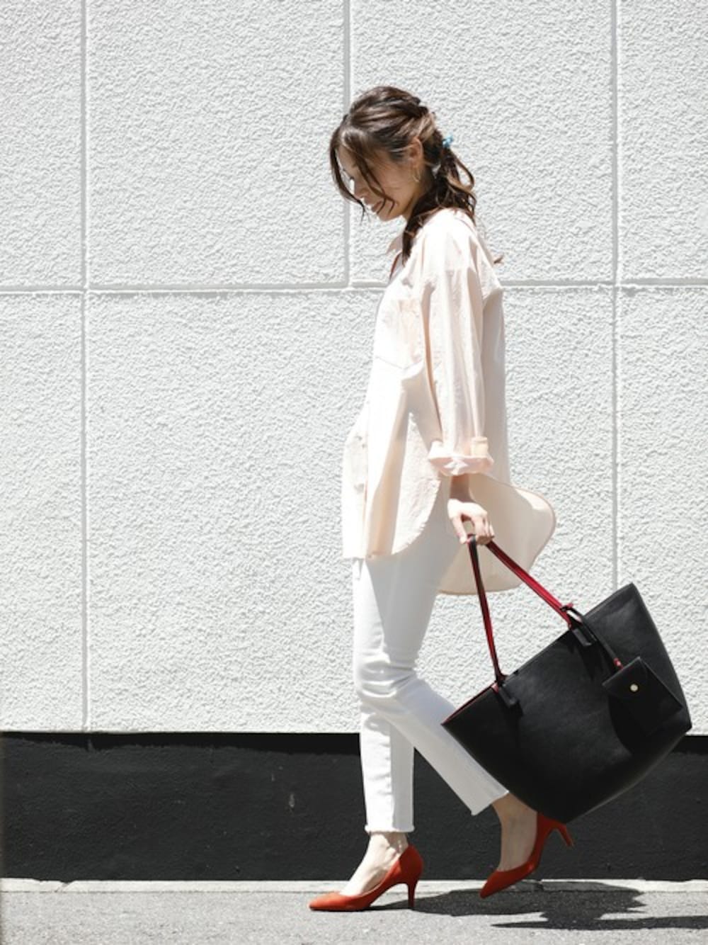chikaのトートバッグ「【SALE!!】A4サイズ対応!パスケース&BIGポーチ付きリバーシブルトートバッグ」を使ったコーディネート