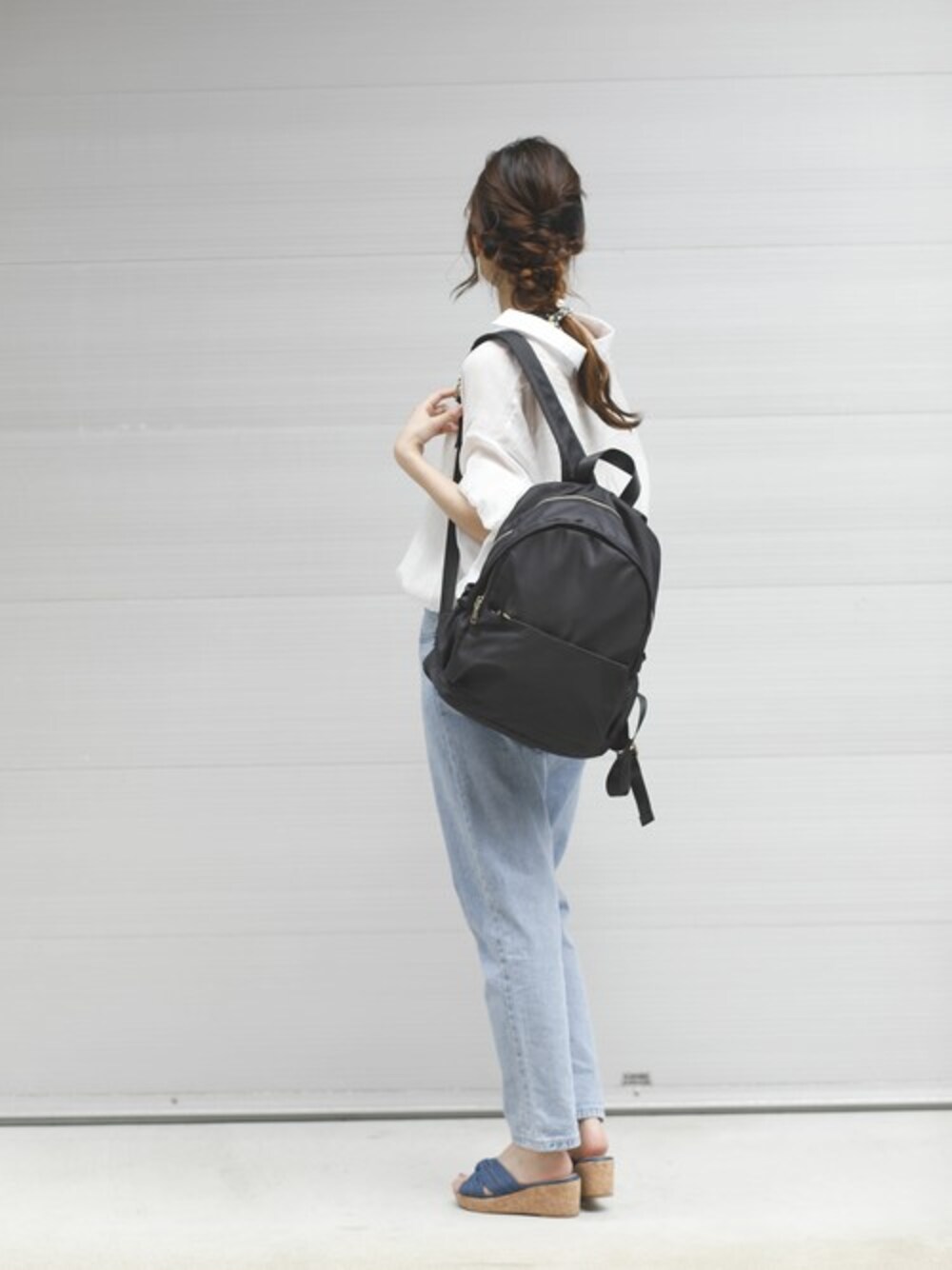 chikaのバックパック/リュック「【SALE!!】A4サイズ対応!大容量ナイロンジップバックパック」を使ったコーディネート